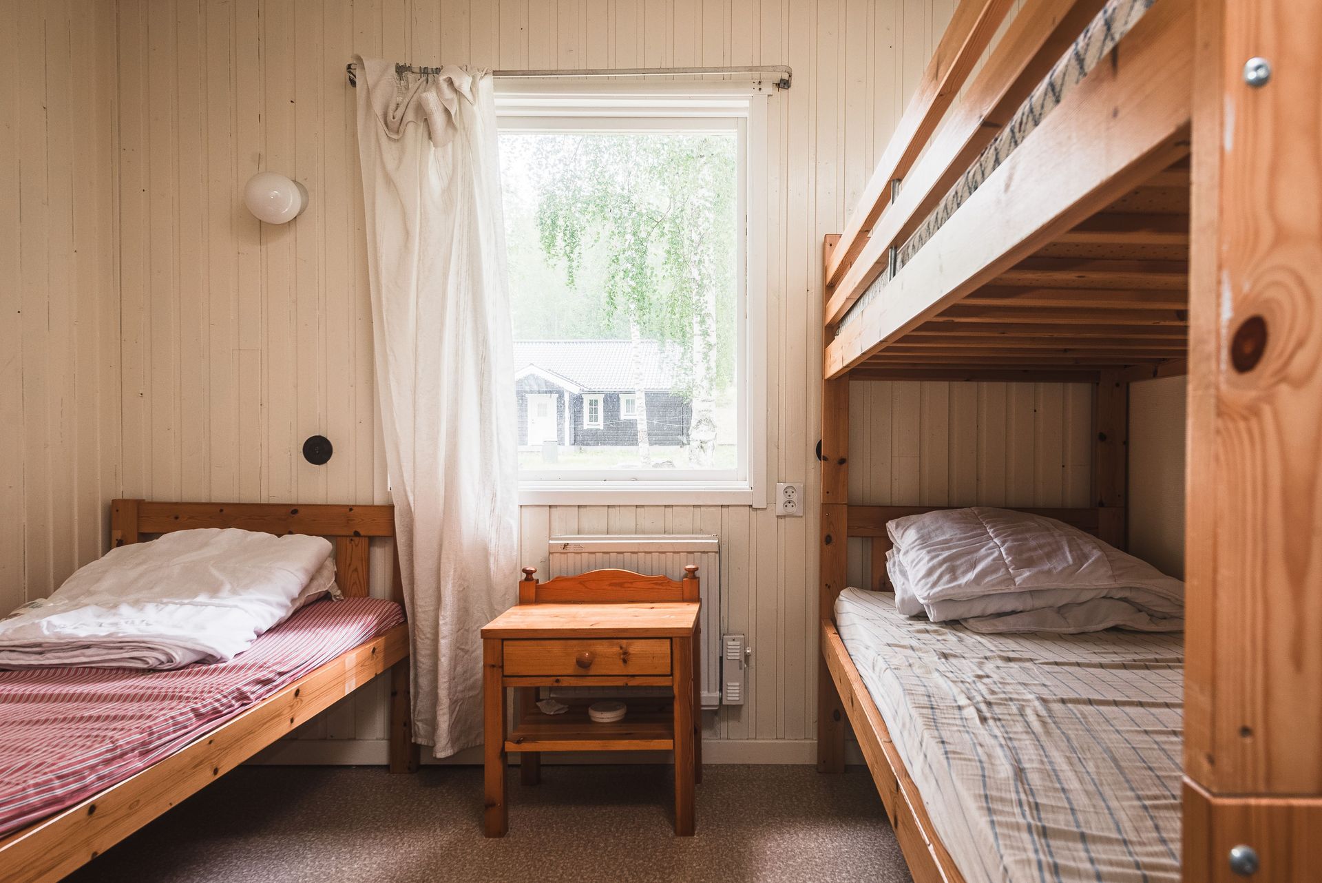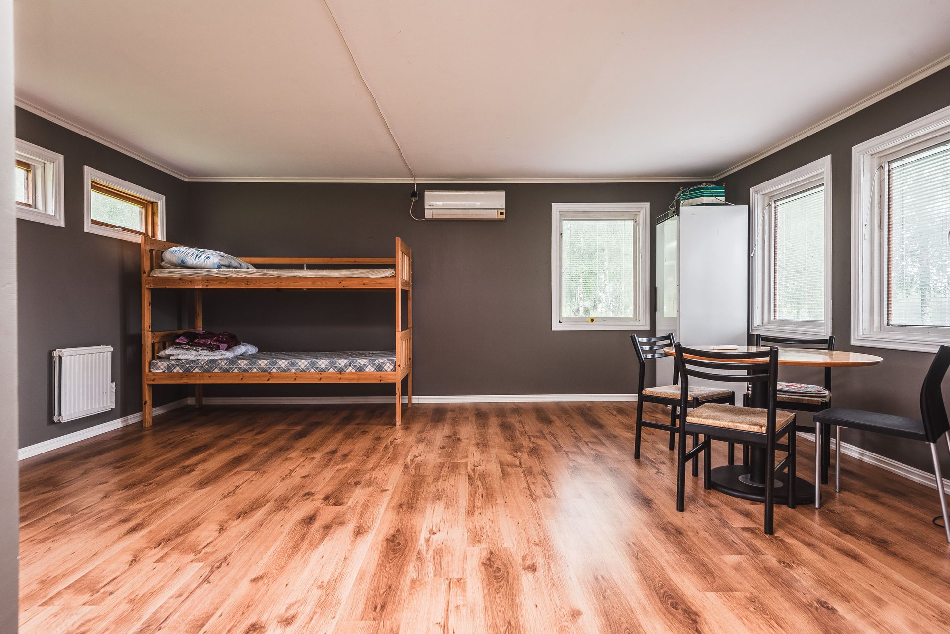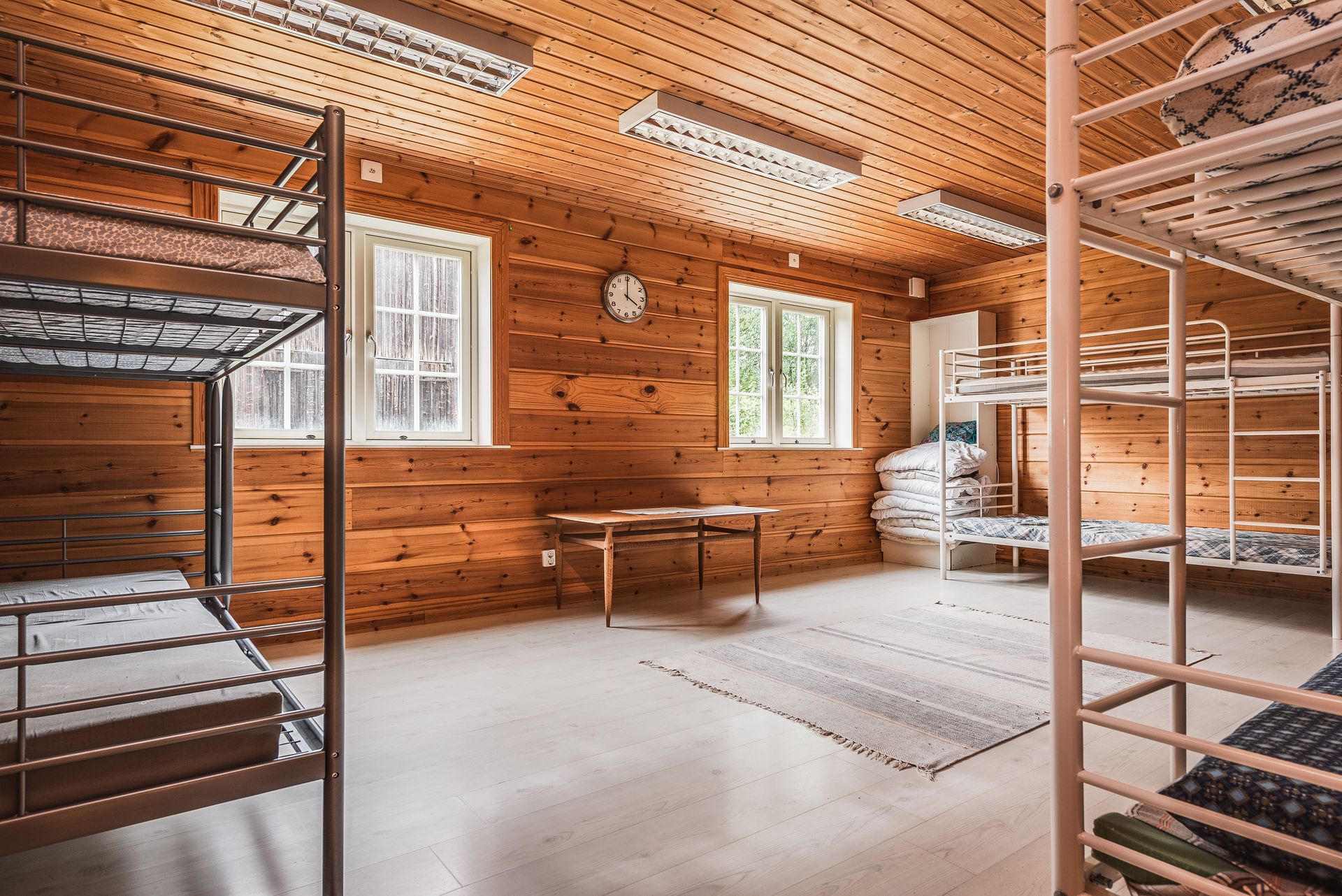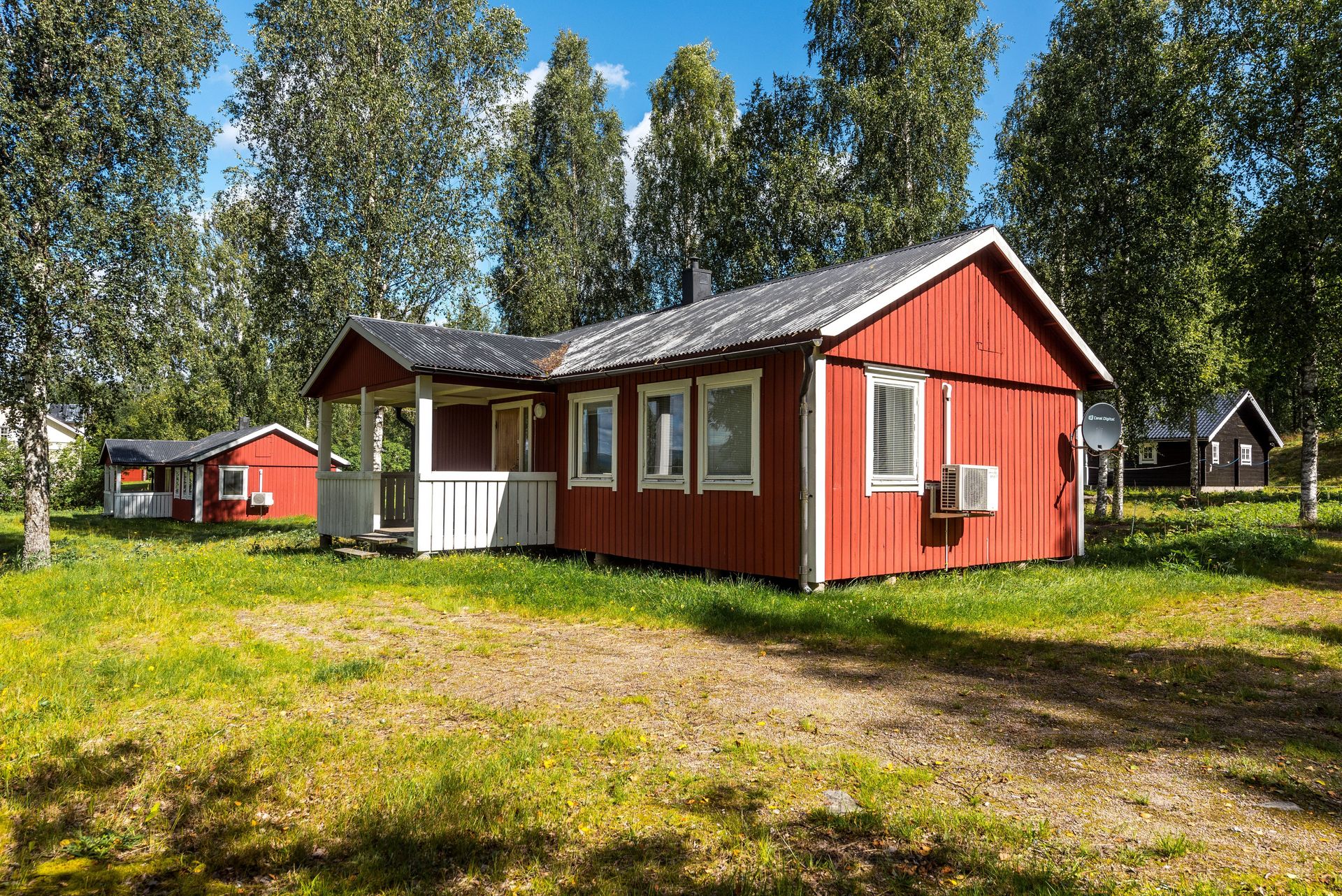 - Uppvärmning: Typ av uppvärmning: Direktverkande el, luftvärmepumpar i stugorna. Jordvärme i storstugan..