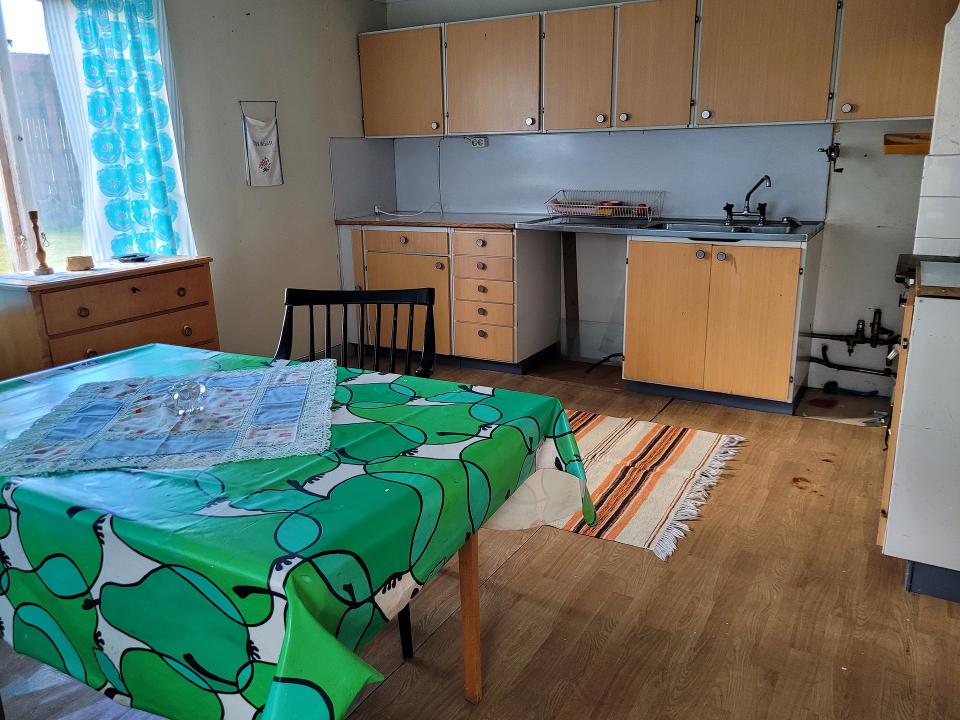 Beskrivning: I stort renoveringsbehov. Byggt i lösvirke och har betongpannor på taket. Troligtvis uppförd i slutet av 1800 - talet. Djupborrat vatten. Består av kök och kammare: Kök med gammal vedpanna och 70-tals köksinredning. Linoleummatta på golvet och plattor i taket. Har funnits el-element. Kammare med heltäckningsmatta, tapet på väggar och plattor i taket.