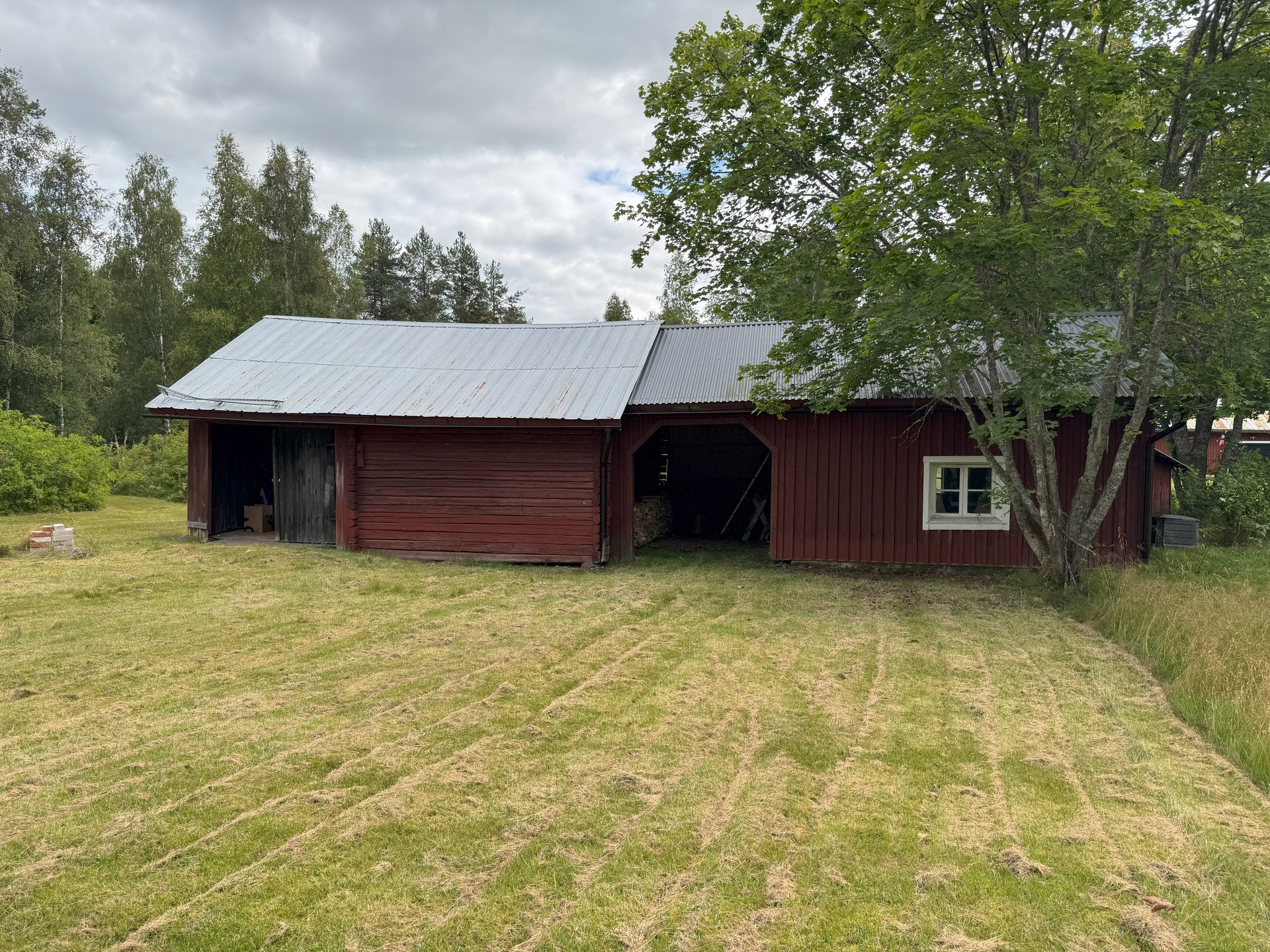 Ekonomibyggnad byggd i timmer samt lösvirke ca 6,0 x 16,0 m med plåt- / pannplåtstak. Loge, vedförråd samt en djurstall med gjuten platta. Del i jordkällare
