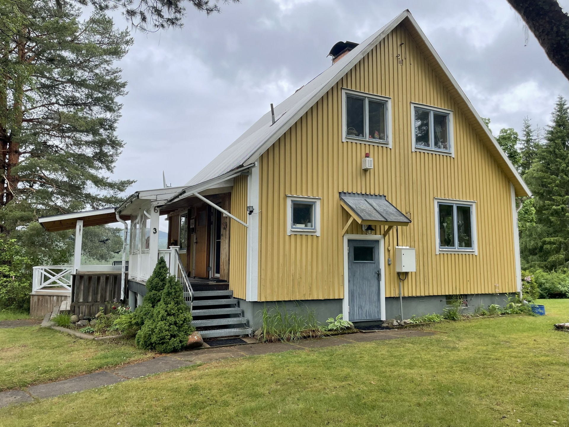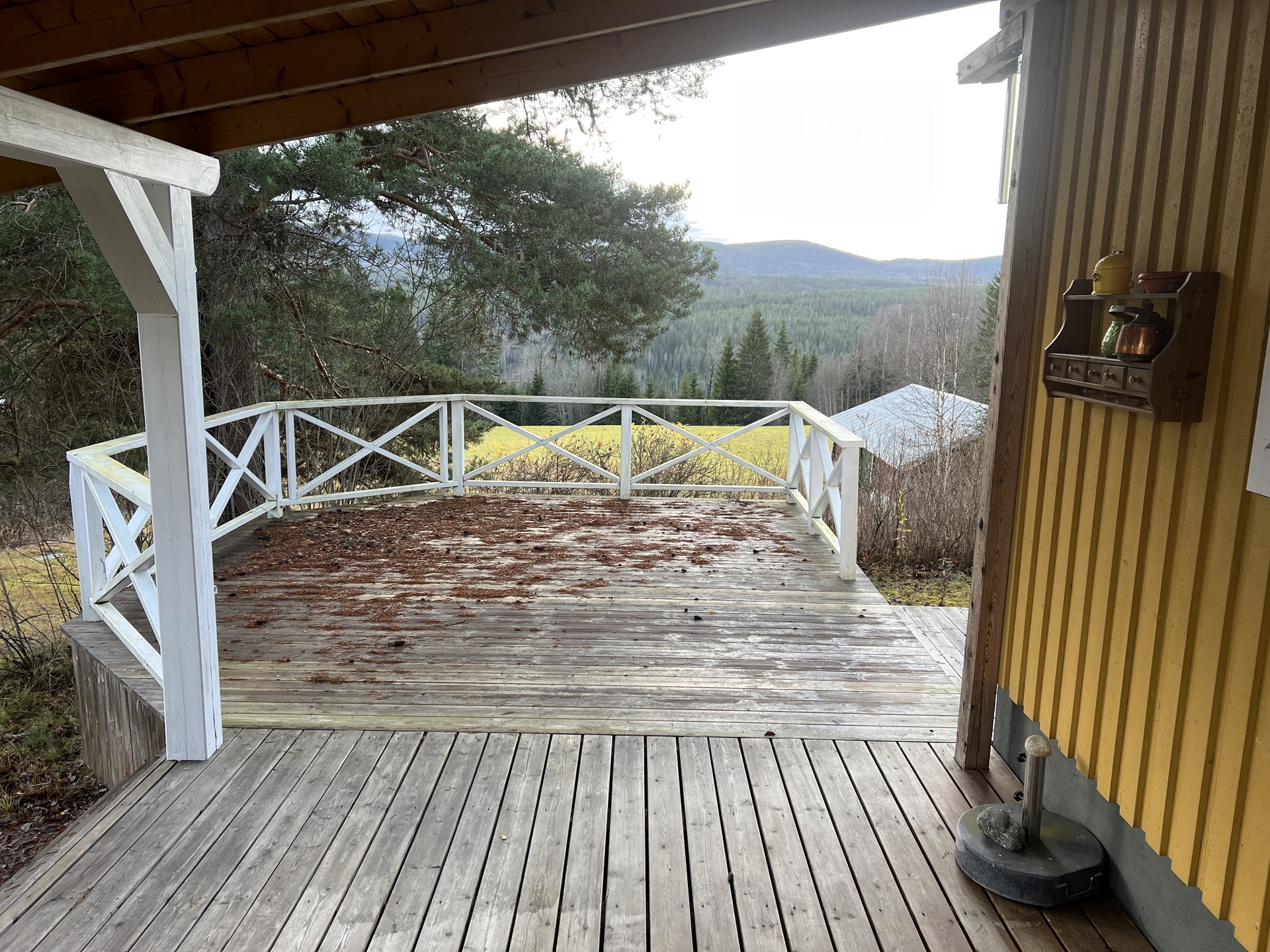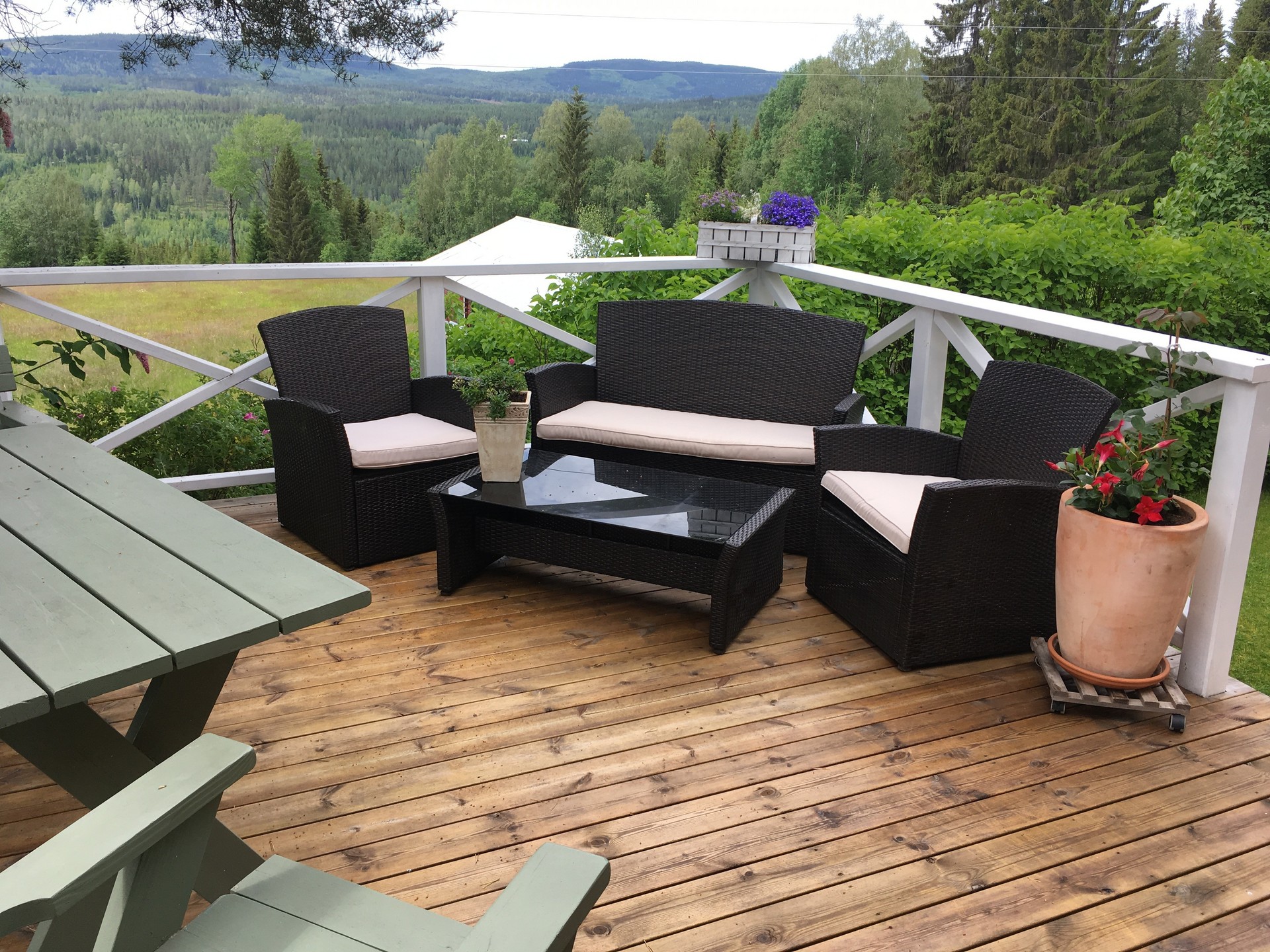 Uteplatsbeskrivning: Stor altan i västerläge med utsikt över Klarälvdalen.